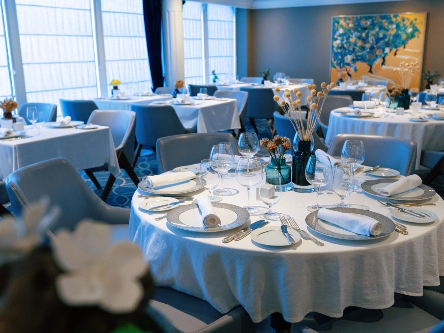 Discover the world through dishes and flavors from the places we visit. Of course, you’ll also enjoy a wide variety of nightly selections such as filet mignon with black truffle sauce. Reservations are not accepted. Choose being seated at a table for two or as part of a larger group of fellow guests.